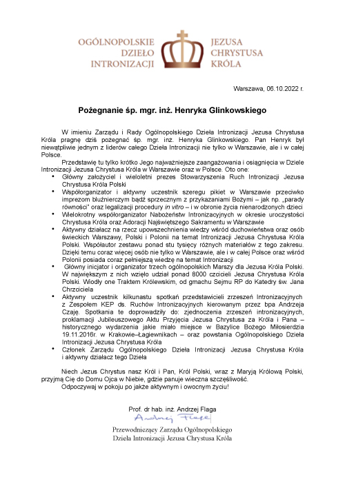 Ruch Intronizacji Jezusa Chrystusa Króla Polski www.JezusKrolemPolski.waw.pl